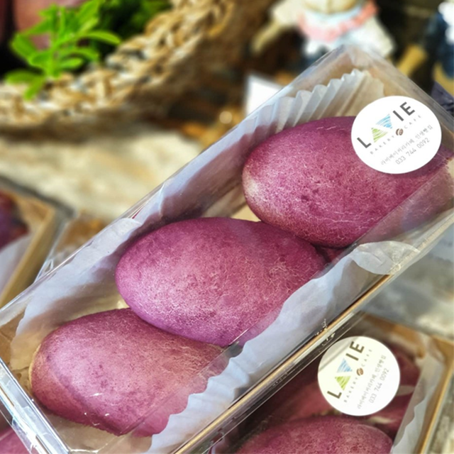• 밀가루(미국,캐나다 50%),고구마(국내산,40%),자색고구마분말(3%)